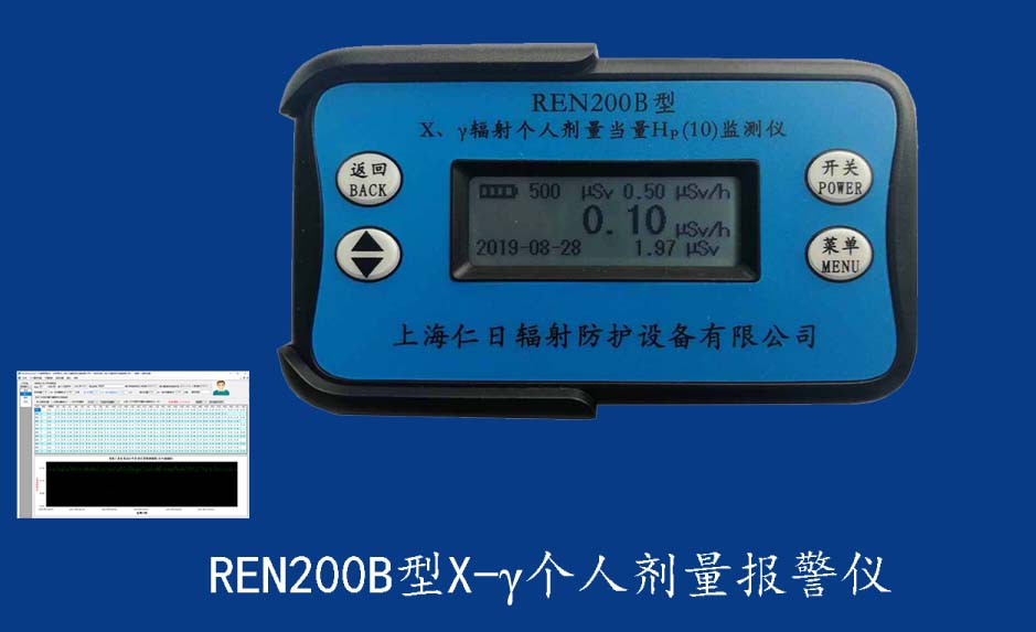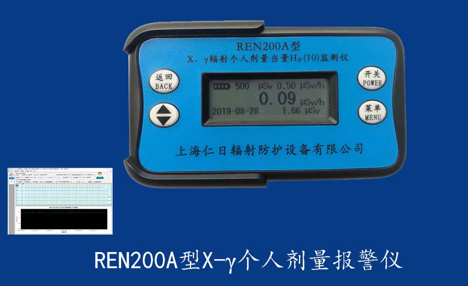 REN200型X、γ個人劑量報警儀(又叫X、γ輻射個人劑量當量HP(10)監(jiān)測儀)內(nèi)置高靈敏度蓋格計數(shù)管為探測器,主要用來監(jiān)測各種放射性工作場所的X、γ以及硬β射線的輻射,具有響應(yīng)快,測量范圍寬的特點。能顯示工作場所的劑量當量率和累積劑量,更換電池時,日期及累積數(shù)據(jù)能永久保存。可選配RenRiPersonal個人劑量管理軟件,該軟件可存儲多個人的歷史數(shù)據(jù),能記錄日累積、月累積、年累積、輻照時長、計算平均劑量率、扣除或不扣除本底輻射,且以文字和圖譜的方式展現(xiàn)數(shù)據(jù)。廣泛應(yīng)用于核電站、加速器、鋼鐵、化工、同位素應(yīng)用、醫(yī)院、工業(yè)X、γ無損探傷、放射醫(yī)療、鈷源治療、γ輻照、放射性實驗室、核設(shè)施周圍環(huán)境監(jiān)測